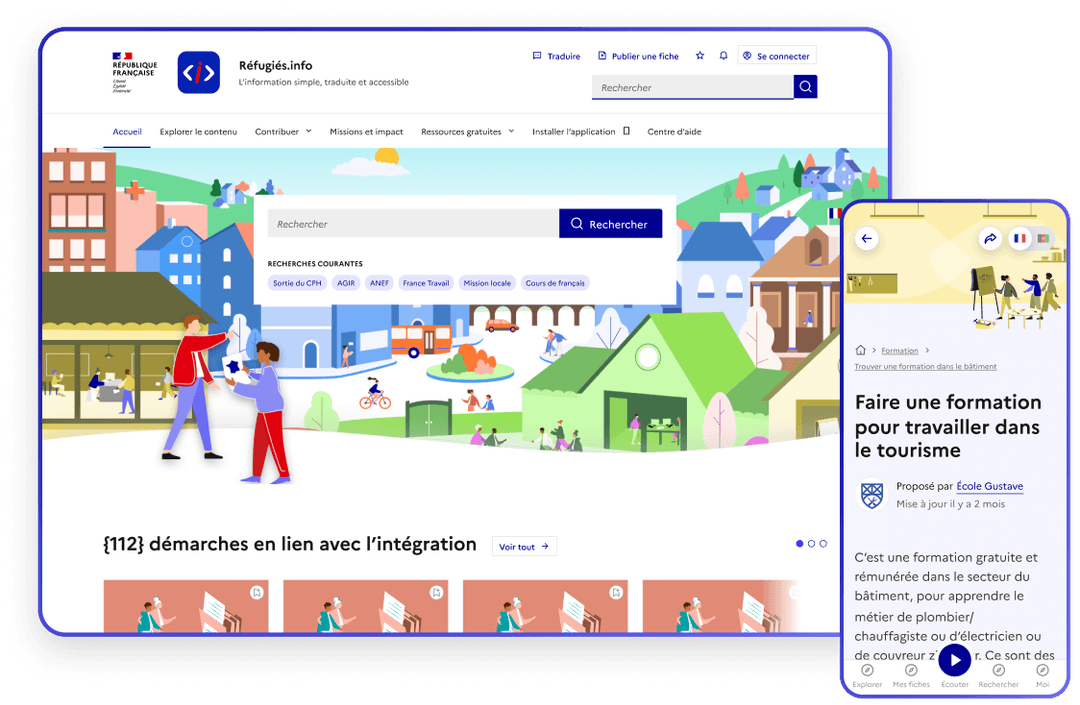 Réfugiés.info est un projet porté par la Délégation interministérielle à l’accueil et l’intégration des réfugiés (DIAIR). Lancé en 2019, il s’est imposé comme un service public incontournable pour l'intégration des personnes réfugiées et l'outillage de leurs accompagnants.