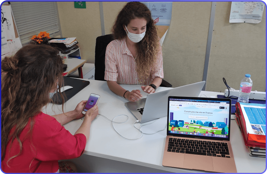 L’application doit permettre de mieux répondre aux usages numériques et aux besoins des personnes réfugiées elles-mêmes. Une grande recherche utilisateur est lancée, avec la conduite d’entretiens et de tests auprès de plus de 60 personnes réfugiées et professionnels.