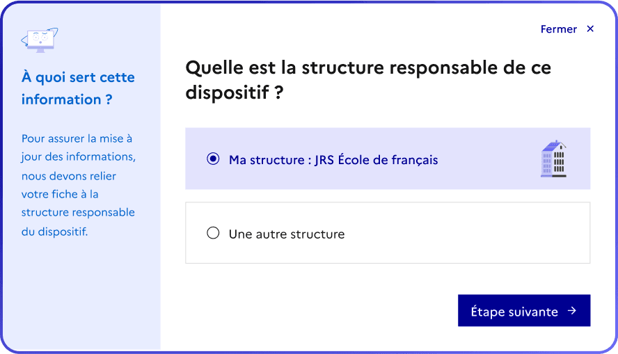 Votre action peut rapidement évoluer (dates des sessions de formation, formulaires de candidature, fréquence des cours de français, etc.), vous êtes garant de la mise à jour des informations.